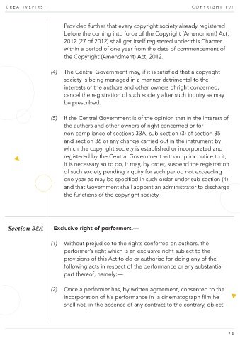 Section 38A Exclusive right of performers.—